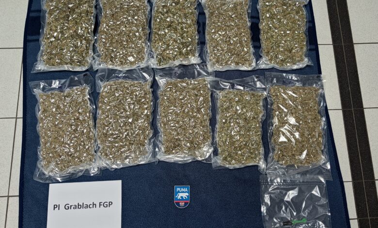Am 7. Mai 2023 um 02:30 Uhr reiste ein bislang unbekannter Mann mit einem PKW am Grenzübergang Seebergsattel nach Österreich ein. Dort wurde er von Polizeibeamten angehalten und kontrolliert. Noch während der Kontrolle stieg der Mann aus dem Fahrzeug und flüchtete zurück auf slowenisches Staatsgebiet und verschwand dort in der Dunkelheit. Bei der Durchsuchung des in Slowenien zugelassenen PKW fanden die Polizisten in einem Plastiksack hinter dem Beifahrersitz 5,5 kg Cannabiskraut. Dieses war in 10 vakuumierten Säcken zur je 550 Gramm abgepackt. Weitere Erhebungen betreffend des Zulassungsbesitzers und der geflüchteten Person werden via Polizei Kranj/Slowenien durchgeführt werden.