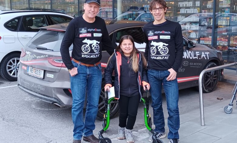 Radlwolf und Michi Kurz freuen sich Melanies Wunsch erfüllen zu können. Das Spendengeld ist ein Teil der Spenden der Veranstaltung „9. Bewegung für den guten Zweck 2023“. Für Wolfgang und Michi ist es wieder eine volle Motivation mit ihre Veranstaltung „Bewegung für den guten Zweck“ die nächstes Jahr am 1. September 2024 zum 10. mal stattfindet.