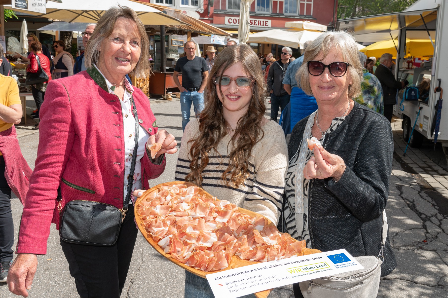 Die Verkostung des Gailtaler Specks g.g.A. war ein voller Erfolg und ein wahres Fest für die Sinne. Lassen Sie sich überzeugen: Erwerben Sie ein Stück Tradition bei Speckbauern und -Bäuerinnen, auf dem Bauernmarkt oder online über die Website.