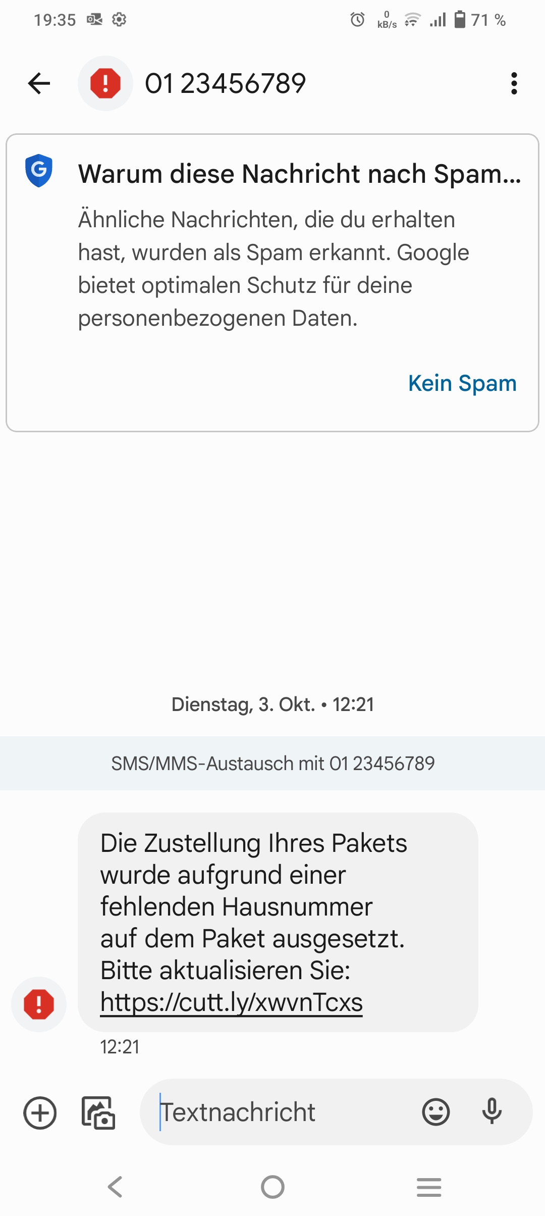 - Klicken Sie keinesfalls auf Links oder rufen Sie die Telefonnummern in diesen Nachrichten an.