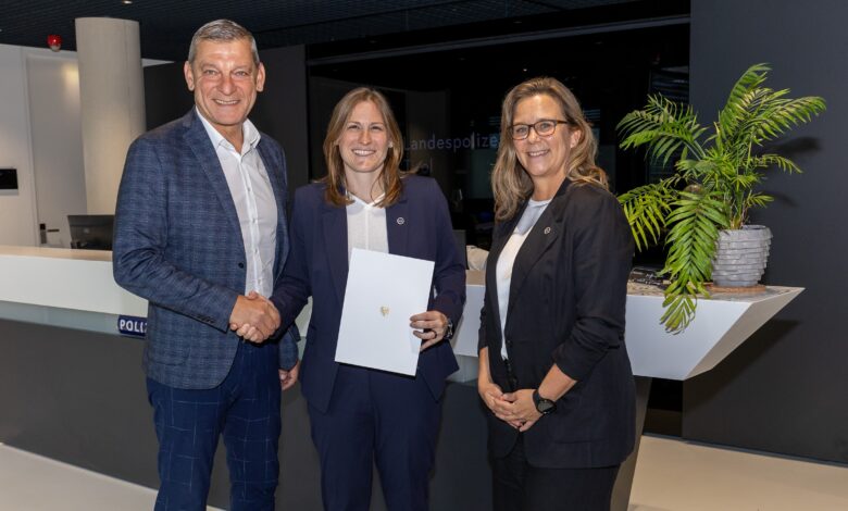Landespolizeidirektor HR Mag. Helmut TOMAC nahm im Beisein der Leiterin der Landeskriminalabteilung, Obst Katja TERSCH am 17. Juli 2024 die Übergabe des Bestellungsdekrets vor und gratulierte der Beamtin zu ihrer neuen und verantwortungsvollen Führungsaufgabe.
